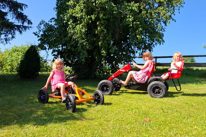 Für unsere kleinen Gäste gibt es einen tollen Spielplatz mit Schaukel, Kletterturm, Sandkasten und Boulderwand – hier können Kinder nach Herzenslust toben, klettern und spielen. Außerdem steht unseren jungen Feriengästen ein Kinderfuhrpark zur Verfügung, der keine Wünsche offenlässt: Bobbycars, Tret-Traktoren und Berg-Gokarts sorgen für jede Menge Spaß und Bewegung.